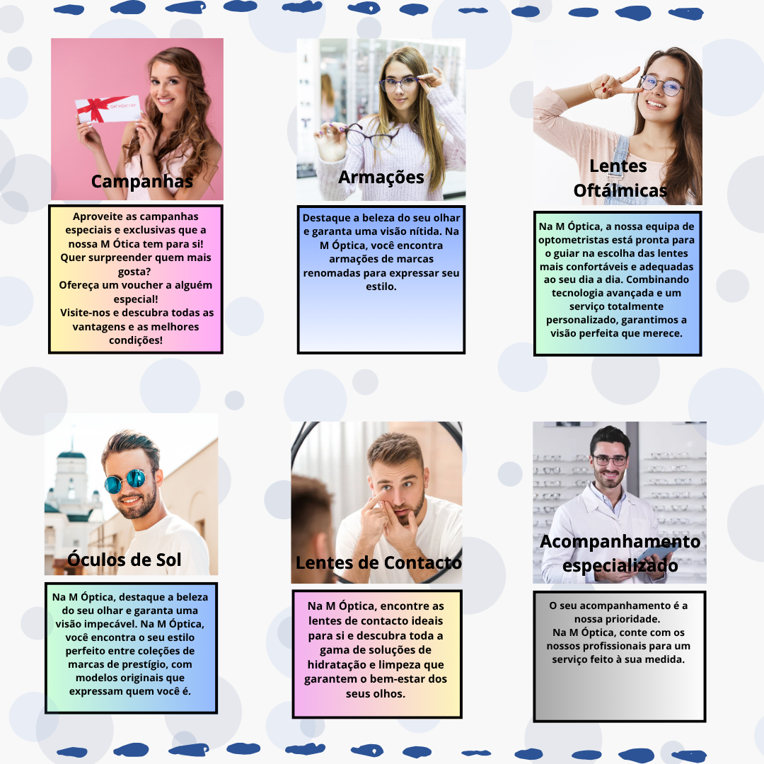 Os serviços prestados na M Ótica abrange um leque alargado de opções, visando facilitar o acesso a cuidados de saúde ocular de excelência.